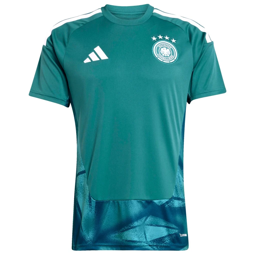 חולצת הכדורגל של מקסיקו משלבת ירוק קלאסי עם תבנית אזטקית כהה היוצרת אמבלם מרכזי, יחד עם צווארון דו־גוני ושלושת פסים מודגשים בכתפיים. הבד קליל ונושם ומותאם למשחק אינטנסיבי.